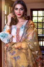 Exclusive Boutique New Casual Wear. The shirt is made on cambric lawn fabric. It has got beautiful hand embroidery and digital printing pattern on it and dupatta is on sari organza digital print with cambric bottom. This dress is available in extra small, small, medium, large and extra large sizes.
