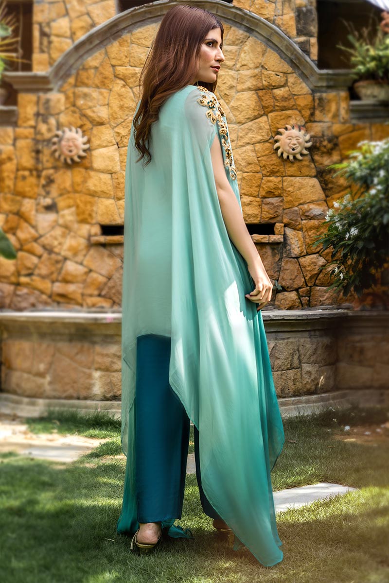 EXCLUSIVE AQUA GREEN AND TEAL LUXURY PRET – SDS494