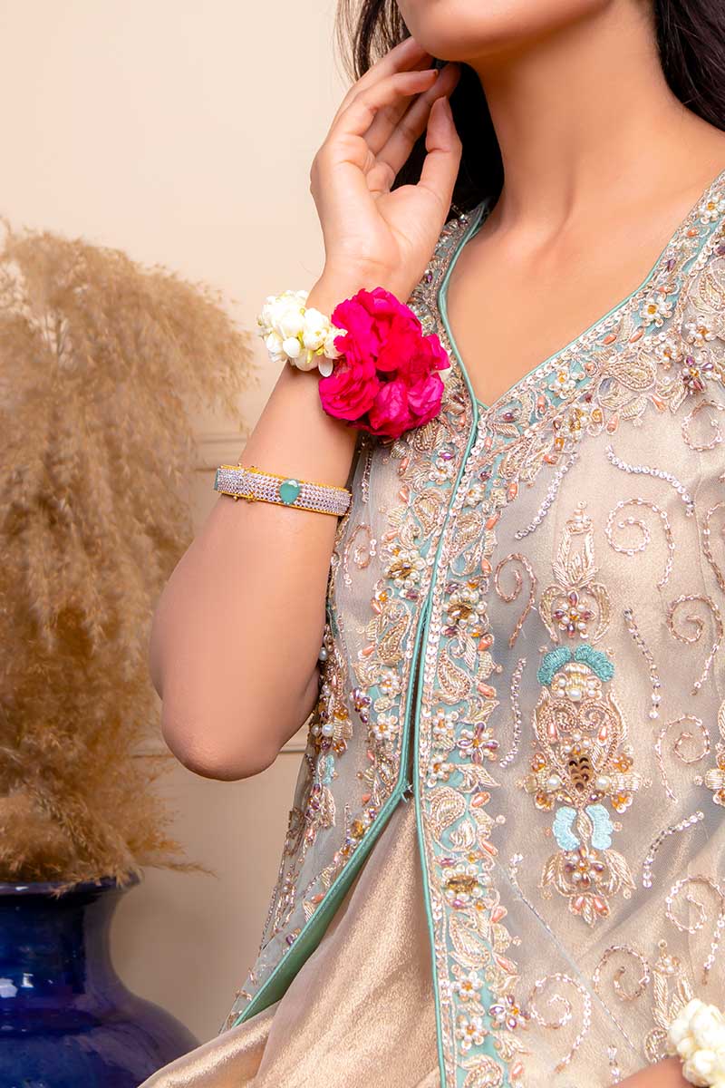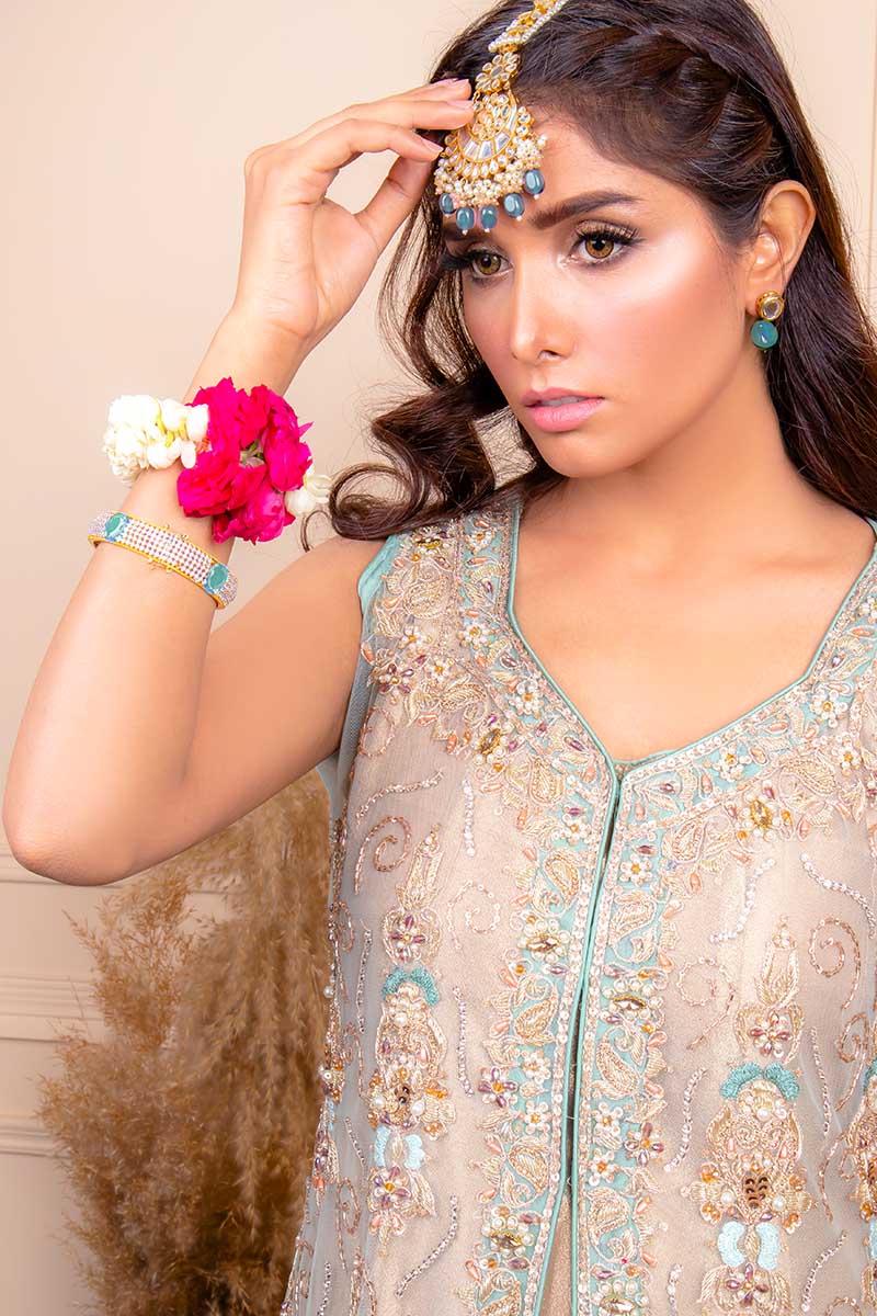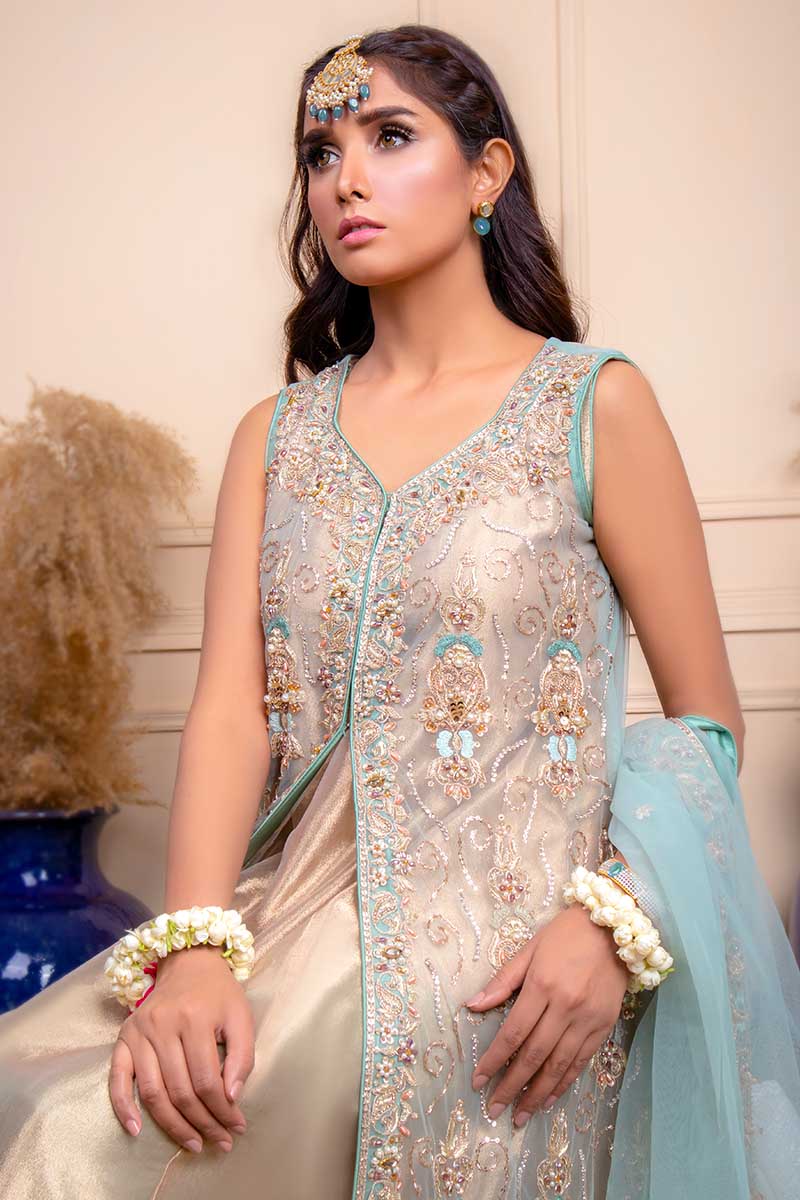 EXCLUSIVE AQUA GREEN AND GOLD BRIDAL WEAR – ZG25086