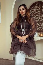 Exclusive Boutique’s New Party Wear Collection . This dress is made on Organza fabric having hand made belt, With Indian Raw Silk Ijar.This dress is available in small, medium and large size.