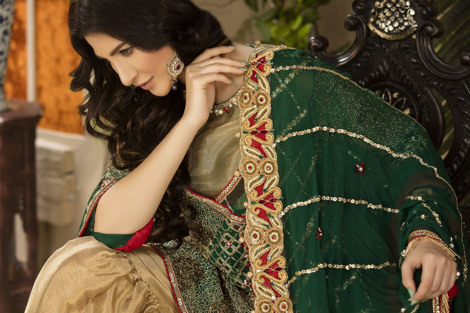 EXCLUSIVE BOTTLE GREEN AND GOLD DRESS – SABD04